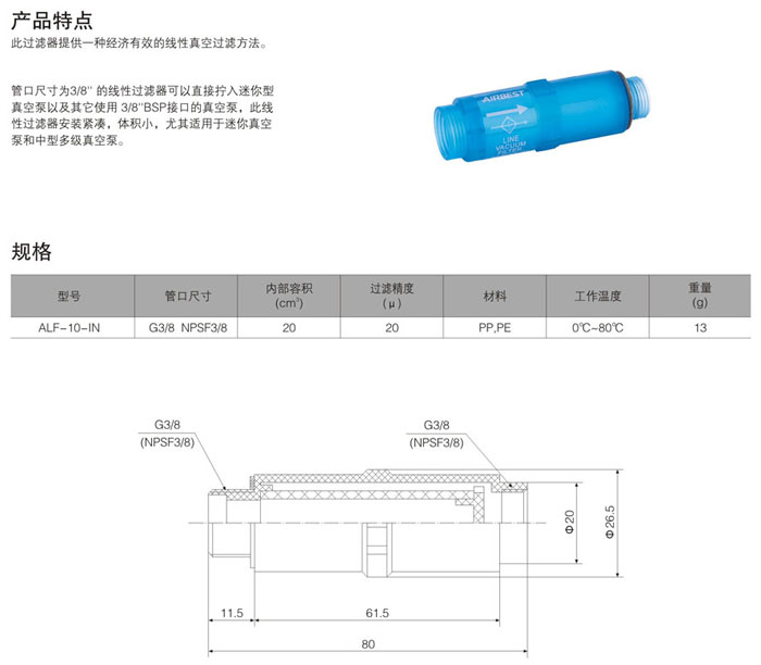 产品标题:ALF-10-IN,ALF系列真空过滤器,真空设备,真空元件
