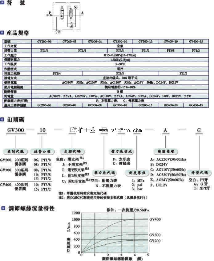 产品标题:GV300-15,AIRTAC气源处理,GV系列慢启阀